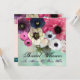 Elegantes rosas brancas e rosas e anêmonas roxas e azuis sobre fundo azul aqua com motivos damasco,. Este design sofisticado e único é perfeito como anúncio de casamento, cartões de lugar, save-the-date, cartões de agradecimento, chuveiros de noiva, aniversários de 16 anos, festas, chuveiros de noivado, ou qualquer outro evento que você deseje!