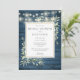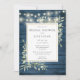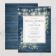 Com luzes de corda bonitas e greenery delicada em aquarela em um fundo de madeira rústica azul, este convite de chá de noiva elegante pode ser personalizado com as informações do seu chá de noiva especial. Projetado por Thisisnotme©