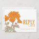 Desenho florístico de crisântemo floral com placa de resposta do casamento outono de outono com cobertura gráfica. Edite estes cartões com as suas próprias palavras datas e opções de refeições. Perfeito para um final de verão, casamentos outono do início do outono, ou um casamento, noivado ou aniversário floral de horta floral, laranja, verde, castanho e branco. Outros itens de casamento correspondentes estão disponíveis. Desenho e arte gráfica únicos e design por Sarah Trett para www.mylittleedenweddings.com
