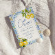 Inspirado pelo encanto da Costa Amalfi, este convite para chás de fraldas apresenta limões de aquarelas, azulejos mediterrânicos e uma elegante tipografia azul. Um design fresco e vibrante com talento costeiro eterno.