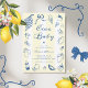 Celebrar a dolce vita com este divertido "Bebê do Ciao" Convite para Chá de fraldas italiano Drawn Lemon! Apresentando tons azuis e amarelos vibrantes com ilustrações de rabiscos charmosos, desenhados à mão, de limões, massas, pizza, tomate e gelato, esta design suja traz a magia mediterrânica da Costa Amalfi para o seu chá de fraldas de verão. O convite também inclui padrões distribuídos e um roteiro divertido e manuscrito que adiciona um toque caprichoso ao seu evento. Perfeito para um tema italiano de inspiração cítrica ou rústico, este convite captura a alegria do verão com um delicioso talento italiano!