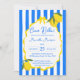 Ciao Bella Dolce vita Lemons listras azuis listras chás de panela italianas descarregamento instantâneo, limões azuis modelo chá de panela editável; convites de chá de panela de verão, convites de chá de panela italianos antigos, convites de chá de panela de borda ondulada