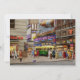 Foto colorida de 1952, título original: Times Square Street Scene Fotógrafo: Angelo Rizzuto Localização: 43º e Broadway Estamos a alguns quarteirões da Times Square, mas essa área é considerada parte disso. Baixo do quarteirão está Duffy Square. O restaurante do outro lado da rua chamado Tofferetti, era "O lugar em que se podia ver", tinha 1000 pessoas, e estava aberto 24 horas por dia. Inicialmente foi aberto em 1914 como Restaurantes Triangulares. Mas então foi reimaginado em 1939 durante a Feira Mundial, onde eles serviam. Eles então abriram este restaurante logo depois. Encerrou em 1968. Uma das coisas que era conhecida era o estilo de escrevendo criativo que o cardápio tinha. Por exemplo, batata cozida "pelada grosseira mas com coração fraco". Ou, "Das camas de lava de Idaho, produto de milhões de anos de evolução", eu acho que também é um prato de batata. Logo acima está a roupa de Simon Ackerman. Começaram oficialmente em 1914, mas abriram uma loja em 1932. Eles venderam roupas masculinas, que na verdade ainda é procurada hoje. Fechou em 1964 Hoje, acho que a maioria dos edifícios se foram, exceto talvez o da esquerda.