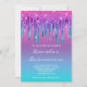 Um convite bonito para a fabulosa festa de festa de aniversário quincinera. O brilho multicolorido, cor-de-rosa cinza, roxo, azul, turquesa e verde, e as gotas de folhas, criados com gráficos de arte digitais contra um fundo ombre brilhante, cor-de-rosa brilhante, lavanda roxa, azul, azul-céu e tartaruga. Personalize o estilo de fonte, o tamanho, o espaçamento e a cor elegantes, conforme necessário. Convites de festa de aniversário personalizáveis. Nadinha de goma-lama moderna, convites para perfuração de folhas de glitéricas quicas.