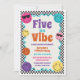 Este cartão apresenta o tema de aniversário " Cinco é um Vibe", sorrisos coloridos retrorreflectores em cor azul rosa azul roxo cor laranja feliz face emoji aniversário de criança.