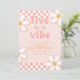 Cinco é uma Vibe Groovy Girl Retro inspirou um convite de 5 com fontes estilo 70 e margaridas e padrão de verificador.