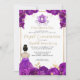 Violeta Roxo Floral Cinderela Princesa Palhaça Vestida Glitter Dourada Glitter Sparkle 15 Aniversário Real Quinceanera Convite