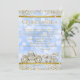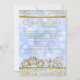 Convite de Princesa Quinceanera com belo cavalo diamante dourado e carruagem em um brilho dourado e fundo azul Cinderela com brilho de diamante. Este lindo convite de princesa de conto de fadas Quinceanera é facilmente personalizado para o seu evento, basta adicionar seus detalhes no estilo de letra e redação de sua escolha. Este é um design impresso sem diamantes reais, brilho, etc.
