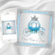 Cinderela convite de aniversário com uma bela, rico, princesa real, azul e princesa, carruagem e fundo azul claro e prateado brilhante. Essa linda garota, qualquer número de Cinderela, é facilmente personalizado para o seu evento através da simples adição de seus detalhes no estilo e cor da fonte, e do texto de sua escolha. Este é um design impresso sem brilho real, diamantes, rendas etc.