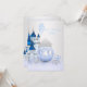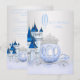 Convite de aniversário de Cinderela com carruagem de princesa de diamante azul e prata e fundo do castelo. Essas lindas meninas, qualquer convite de aniversário de Cinderela azul e prata, uma vez em um tempo, é facilmente personalizado para o seu evento simplesmente adicionando seus detalhes no estilo de fonte e cor, e a redação de sua escolha. Este é um design impresso sem brilho real, diamantes, pérolas, etc.
