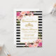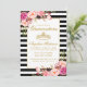 Placa de Convite para Quinceanera, Dourada Coroa, Black and White Strips, cor-de-rosa-d-água elegante, cor-de-rosa, cor-de-rosa