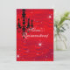 Convite Red Quinceanera com Chandelier. Bonito fundo metálico com estrelas brancas brilhantes. Personalize com seu texto e escolha de fonte. Elegante e sofisticado para uma criança especial de 15 anos. TODOS OS ELEMENTOS DESIGN SÃO IMPRESSOS.