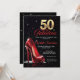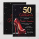 Convites lindos para aquela mulher desonesta a fazer 50 anos! Indo para 50 / 50 & Fabuloso com alta cura vermelha e 50 em ouro sobre fundo preto. Glitter espumante. Obter decoração de FESTA DE ANIVERSÁRIO correspondente.