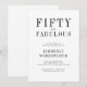 Convite de aniversário de 50 anos minimalista moderno preto e branco Cinquenta e Fabuloso que você pode personalizar e enviar para a celebração do seu aniversário de cinquenta anos. Apresenta tipografia estilosa e sofisticada com uma assinatura manuscrita e um layout moderno e limpo.