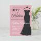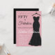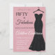Um convite de aniversário de 50 anos elegante e moderno, com letras elegantes "Cinquenta e Fabuloso", brilho preto e rosa que você pode personalizar e enviar para a celebração do seu aniversário de cinquenta anos. As palavras "Cinquenta e Fabuloso" estão sobre um fundo com brilho rosa, com uma tipografia de letra cursiva preta e branca popular e elegante, colocada ao lado de um vestido de noite sem alças, sofisticado e glamoroso com brilho preto. Divirta-se personalizando o nome, data e hora, local e RSVP com a ferramenta de edição.