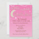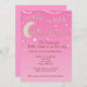 O convite bonito do chá de fraldas com uma cintilação, cintila pouco tema da estrela. Céu cor-de-rosa macio com as estrelas brancas brincalhão e uma lua crescente de creme macia. A fita branca Twisty decora a parte superior. Fácil editar para sua própria cintilação da cintilação pouco tema da estrela.