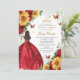 Personalize este boho vibrante vermelho floral e girassol Quinceañera / Sweet 16 aniversario fácil e rapidamente. Basta clicar no botão personalizar para editar os textos, alterar as fontes e as cores das fontes. Apresentando rosas vermelhas brilhantes, girassóis amarelos vibrantes, borboletas e uma garota vestida com um vestido vermelho de bola brilhante. Itens correspondentes disponíveis no repositório. c) Paperie fina somerset