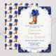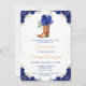 Este elegante e glamouroso convite de aniversário da Quinceañera apresenta uma bela bota floral azul escura e cowboy castanha. O texto combina o script manuscrito e as fontes sans serif modernas para um aspecto elegante e sofisticado. Os arranjos florais e o confete de ouro criam a mistura perfeita de rústicos e quicos. Gráficos por www.etsy.com/uk/shop/SunflowerDayLove