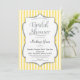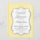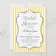 Uma chá de panela elegante de cinza amarela e prateada, com falso quadro de destaque de brilho prateado e listras amarelas e brancas com cinzas e texto preto. Este convite ao chá de casamento moderno é uma forma super na moda de dar as boas-vindas aos seus convidados chás para uma celebração maravilhosa.