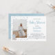 Belo adorável azul-aquarela e elefante-bebê cinza, doce amendoim com giz poeirento de corações azuis. Você pode personalizar este doce e elegante convite para chás de fraldas com seu próprio texto e foto. Por favor, substitua a foto da amostra pela sua. Exemplo de foto cortesia de https://pixabay.com/es/users/regina_zulauf-2147792/