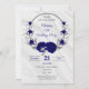 elegante romântico flores azuis reais e cinzas prateadas folhas convite de aniversário de luxo de ferro botânico Os detalhes de brilho são simulados