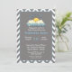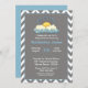 Azul e Cinzas têm um sol bonito saindo das nuvens. Este padrão de cóvron é perfeito para meninos. O ditado popular, você é meu sol, é um tema de chá de fraldas excelente. Personalize o convite com os detalhes do seu chá de fraldas.