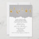 Convites Cinza Baby Shower Estrelas Lua e Nuvens. Personalize para qualquer evento.