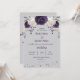 flores roxas e brancas empoeiradas com algumas cinzas prateadas no convite de casamento para cinzas