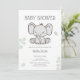 Convites Cinza branca Chá de fraldas neutro de elefantes