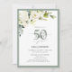 Convites Cinza branca Elegante Floral Verde 50º Aniversário