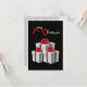 Cinzas e presentes brancos com grandes arcos vermelhos fazem um lindo motivo para seus convites de férias. Os presentes se destacam contra o fundo negro. A inscrição vermelha e dourada adiciona um toque de feriado! O lado do sacudir é cinza e pinstripe branca. Personalize-o com a sua mensagem e informações da festa.