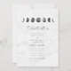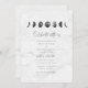 Convite de casamento celestial numa cinza com fases do design da lua. Personalize com seus detalhes de casamento. Entre em contato comigo através do botão abaixo se precisar de assistência ou personalização adicional.