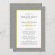 Cinza do janto de ensaio de casamento moderno amarelo e design apresenta um padrão artístico de folhas botânicas em um fundo de cinza. A caligrafia e o script em negrito estão em cinzas e amarelo em um fundo branco e apresentam o primeiro casal e os sobrenomes posicionados de forma artística sobre uma maior e maior marca de coordenação. Um modelo de tendências complementa o design único. A parte traseira do cartão repete o padrão de folha. Para obter melhores resultados, substitua os detalhes de modelo com suas próprias informações deixando espaço entre parágrafos como no exemplo e use todas as letras maiúsculas quando especificado. Envie um e-mail para invitationsuites@gmail.com com perguntas ou use o link de mensagem para solicitações de cores personalizadas.