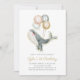 Convide convidados para a família e amigos com este convite de aniversário fofo e caprichoso. Apresenta a ilustração aquosa de uma adorável baleia de cinzas com balões e sotaques dourados. Personalize adicionando nomes, data, hora e outros detalhes. Este convite para o aniversário de baleias-cinzas é perfeito para aniversários de verão, aniversários de praia e aniversários do tema do mar.
