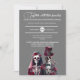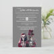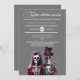 Bem-vindos a um convite de casamento diferente de qualquer outro. Uma verdadeira obra-prima para as almas ansiando por uma celebração encurralada em mistério e encanto. Nosso convite, desenhado em uma elegante cinza média, serve como uma canvas para sua história de amor única, esperando apenas seu toque personalizado. Imaginem a cena: debaixo das delicadas e personalizáveis modelos de texto dos vossos nomes e dos detalhes da vossa cerimônia, está uma visão extraordinária. Contemplem o casal esquelético, eternamente entrelaçado no seu laço inseparável. A noiva e o noivo, feitos com uma artista refinada, são símbolos eternos do amor que transcende a bobina mortal. A noiva, uma visão de beleza espectral, está enfeitada em um profundo vestido de burro que flui como uma cascata de veludo escuro. Seus ossos luminosos, um incrivelmente belo testamento à sua graça de outro mundo, são acentuados por um véu fluido de pura tulha, preso com rosas de marrom. Cada rosa, símbolo da devoção do eterno, sussurra segredos do amor que resistem além da sepultura. Ao lado dela, o noivo fica resplandecente em seu smoking burgundy, um farol de elegância refinada. O seu distinto chapéu de topo, adorado com filigrana prateada e rosas correspondentes, enquadra a sua visão esquelética numa aura de nobreza e graça. Juntos, eles incorporam um romance que desafia os limites da vida e da morte, um lembrete pungente que o verdadeiro amor perdura para sempre. A cinza média do convite proporciona um contraste dramático, mas refinado, à beleza etérea do casal, permitindo que o texto se sobressaia em branco puro e personalizável. Esta elegante design captura a essência de "até a morte nos separarmos", tecendo um conto de amor desfeito que te faz abraçar um tema de casamento que é tão inesquecível quanto único. Aceite o toque final da distinção e faça um convite para você. Permita que seja o prenúncio de uma celebração de casamento que promete ser tão eterno e cativante quanto o amor que honra. Entra num mundo onde o amor é eterno, e deixe este convite ser o primeiro capítulo da tua eternidade.