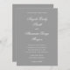 Convite de casamento minimalista com uma caligrafia de rico branco emparelhada com uma fonte moderna de todos os bonés. Personalize a cor da fonte clássica para corresponder ao seu casamento. Um estilo elegante com um sólido fundo de cinza moderno.