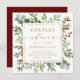Este convite para chás apresenta cor d'água pintada de eucalipto, folhas verdes, bagas vermelhas, ramificações de pínus, e uma falso estrutura quadrada de ouro com caligrafia na moda. Para personalização mais avançada deste design, clique no link "Personalizar mais". Itens correspondentes também estão disponíveis.