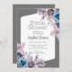 Convites Cinza de Flores Roxas e Azuis