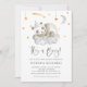 Pequena estrela giratória! Convide familiares e amigos com este convite personalizável para chás de fraldas. Apresenta um lindo panda de bebê adormecido com uma nuvem de cinza e estrelas de lua e ouro. Personalize adicionando seus próprios detalhes de evento. Este convite para o chá de fraldas panda é perfeito para um chá de fraldas Boy.