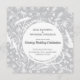 Silhuetas botânicas florais bonito e elegantes da natureza, folhagem branca, folhas e flores em fundo de cinza prateada. Um belo convite para a recepção de casamento noturna que você pode alterar para se adequar à sua própria celebração. Arte original de Nic Squirrell.