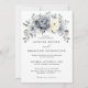 O convite para casamentos no inverno florais elegante inclui cinzas elegantes, marfim e buquê de flor de aquarela prateada verde-arborizado. Entre em contato comigo para obter ajuda sobre a personalização ou se você precisar de outro produto com este design.