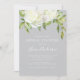 Um elegante chá de panela floral com um belo arranjo de flores brancas de pénia branca e verde-claro. Mostrada com uma cor de fundo azul-cinza que pode ser personalizada para corresponder ao seu tema de casamento. Basta selecionar o botão 'personalizar' para ver opções adicionais de design.