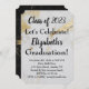 Convide amigos para comemorar a formatura do seu amado com um design ousado, mas elegante, que é fácil de personalizar apenas para aquele formando especial. Dourada e cinza marmorona com o texto negro moderno. As costas são um design de mármore preto e dourado.