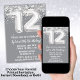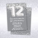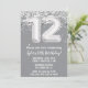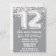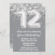 Cinza de prata e 12 branco Convite de aniversário 12 convites de aniversário para prata branca com moderno roteiro escrevendo e balões de folha divertida.
