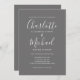 Apresentando nomes de estilo de assinatura, esta cinza elegante e o convite de casamento branco podem ser personalizados com suas informações em caracteres brancos. Projetado por Thisnotme©
