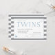 Chá de fraldas bonito e quadril com cinzas e listras brancas com sotaques azuis para gêmeos! Personalize a introdução para dizer quantos! Está disponível outra opção para mais múltiplos.