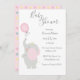 Elefante de cinza simples de aquarela com balão cor-de-rosa, convite de chá de bebê de guião bonito. Precioso e doce é a única maneira de descrever este convite. Doce-n-Simples. Muitos produtos correspondentes disponíveis para completar o seu tema.