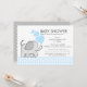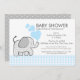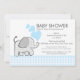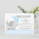 Chá de fraldas de elefante doce com um padrão de verificação de gingham de cinza e corações azuis.