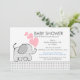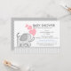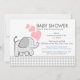 Chá de fraldas de elefante doce com um padrão de verificação de gingham de cinza e corações cor-de-rosa.