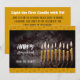 Um belo e impressionante convite de uma menorah e velas acesas contra um fundo nebuloso e uma atmosfera de inverno. Os detalhes na parte de trás do cartão para você personalizar. Tenha um bom feriado ❀